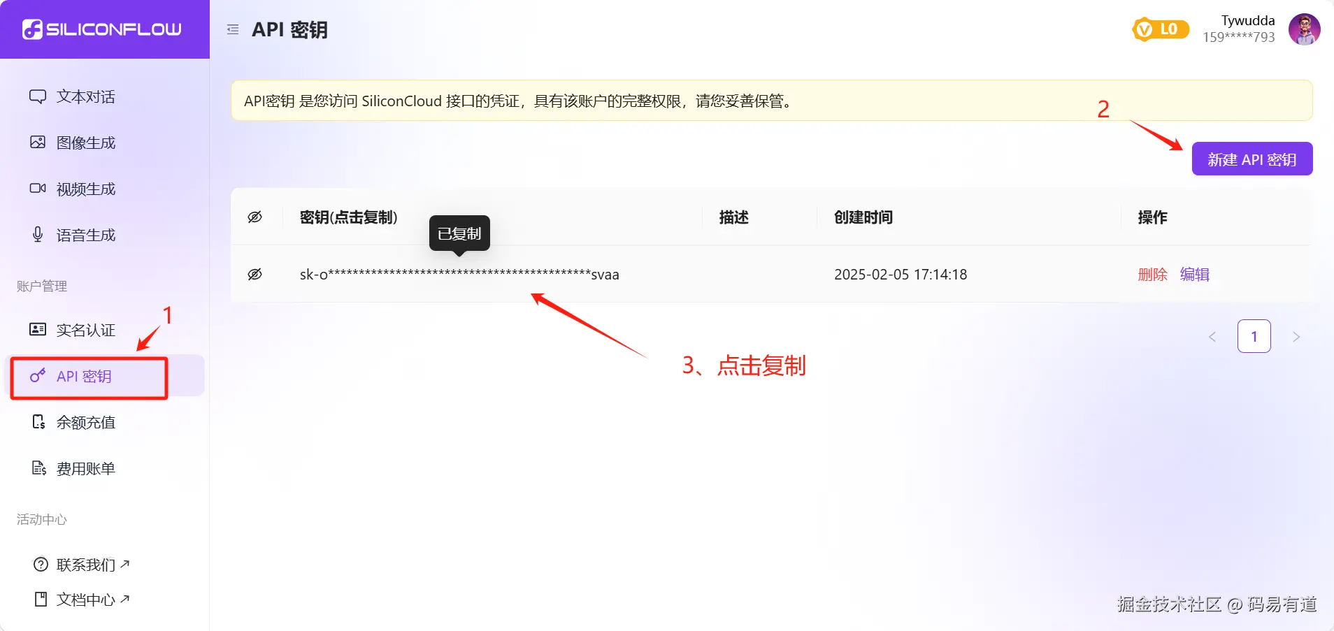 4、生成并复制 API秘钥