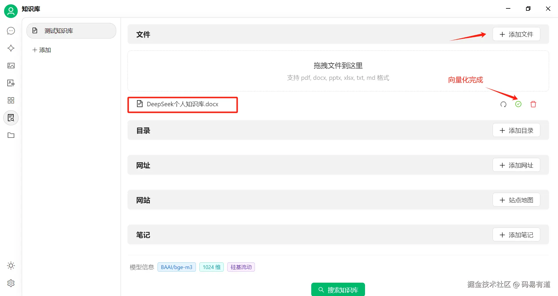 现在有了我们选择的嵌入模型,接下来创建知识库