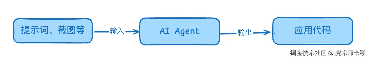 变成了:开发者 -> 提示词 -> AI Agent -> 代码