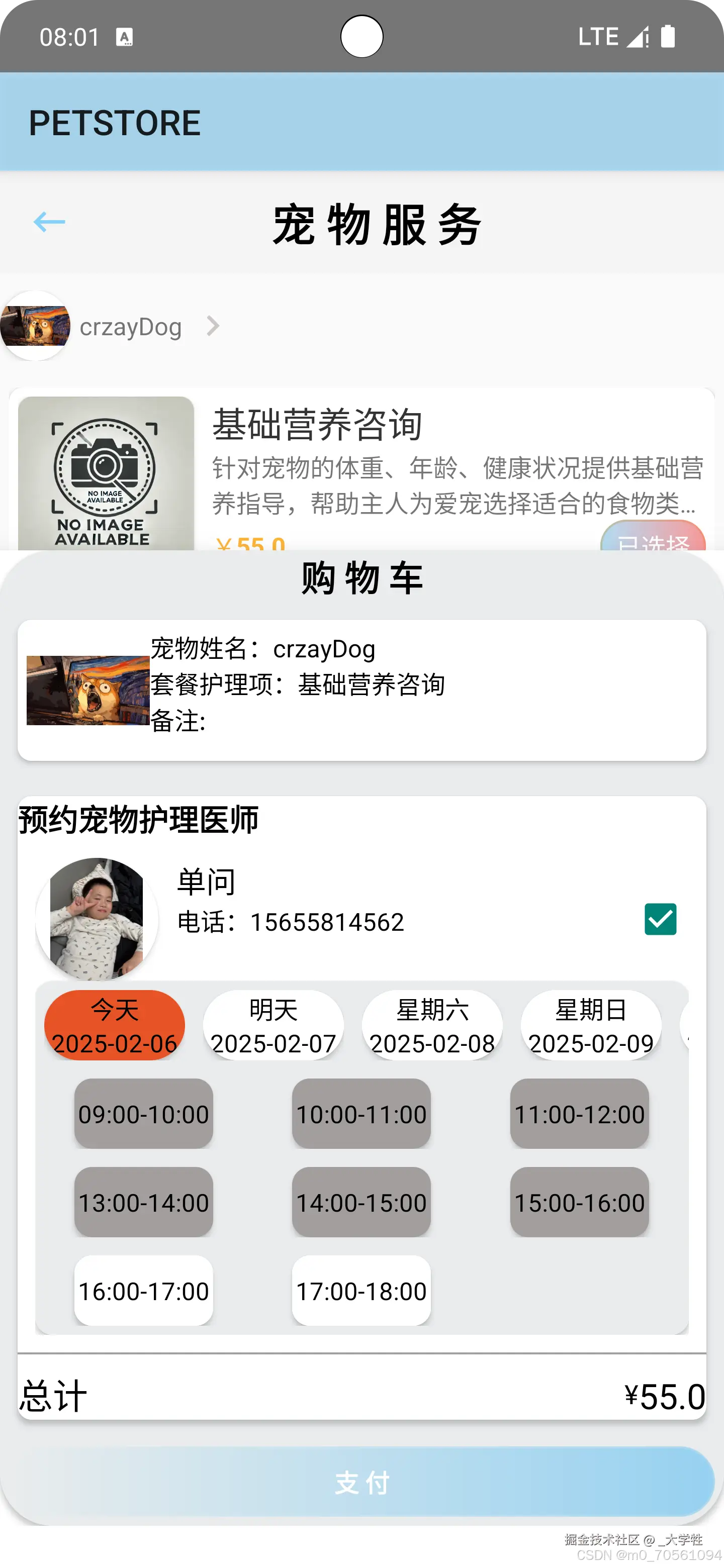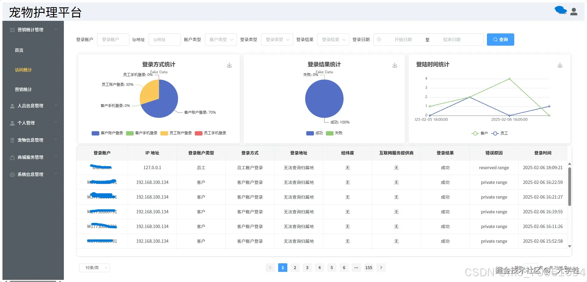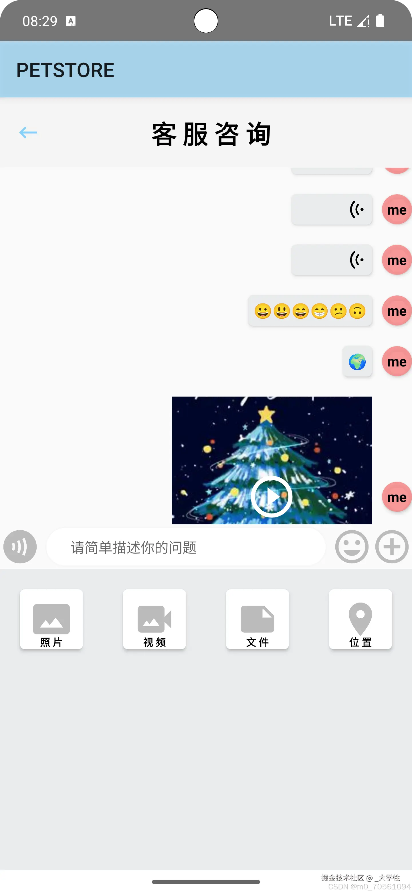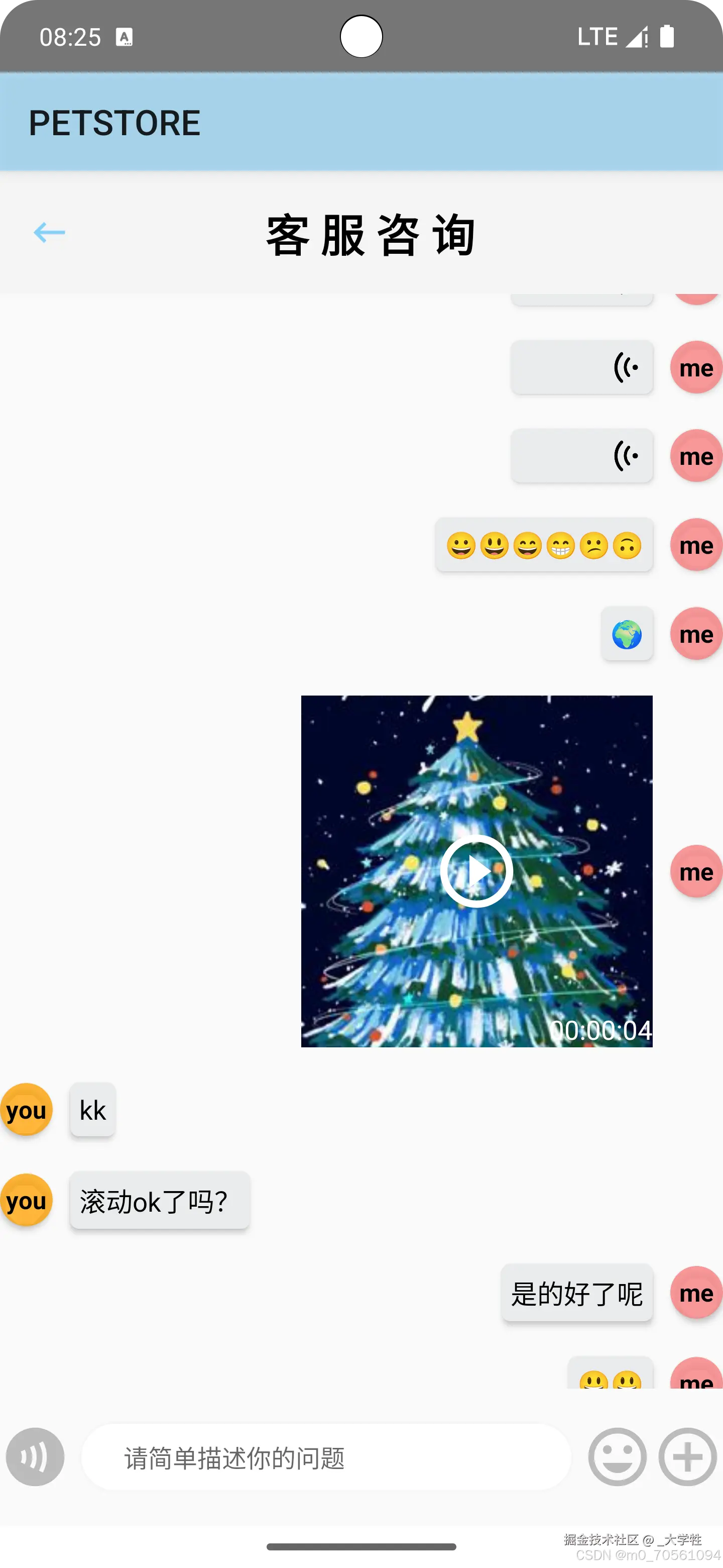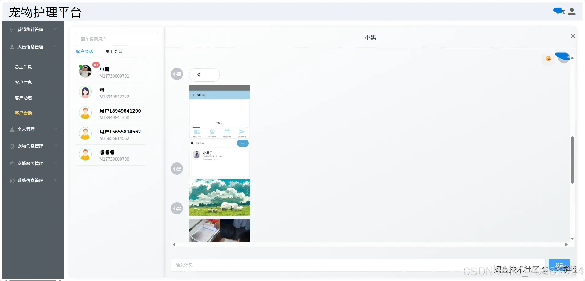 2.在安全性方面:首先使用JWT令牌保障用户信息安全,其次使用了阿里云短信服务为用户提供高效安全的登录校验服务,并且添加@Valid注解进行数据校验;其次我还使用了定时器,为订单进行状态的自动更新。最后使用WebSocket,接受客户和客服的不同种类型消息,实现两端实时通讯,将文字、图片、语音和视频(同时获取第一帧封面照片,优化消息展示,提高流畅度)进行存储。
