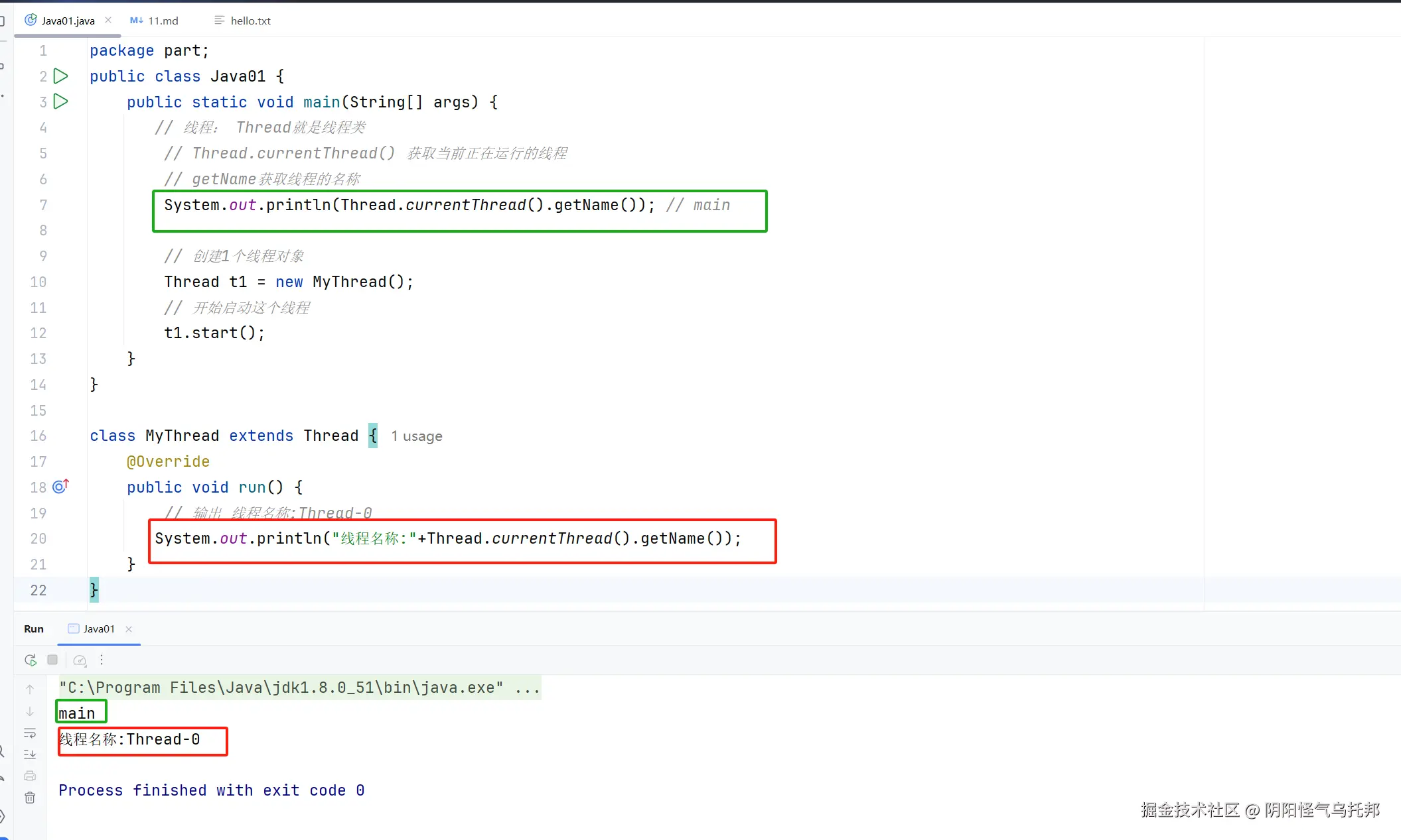 // 输出 线程名称:Thread-0