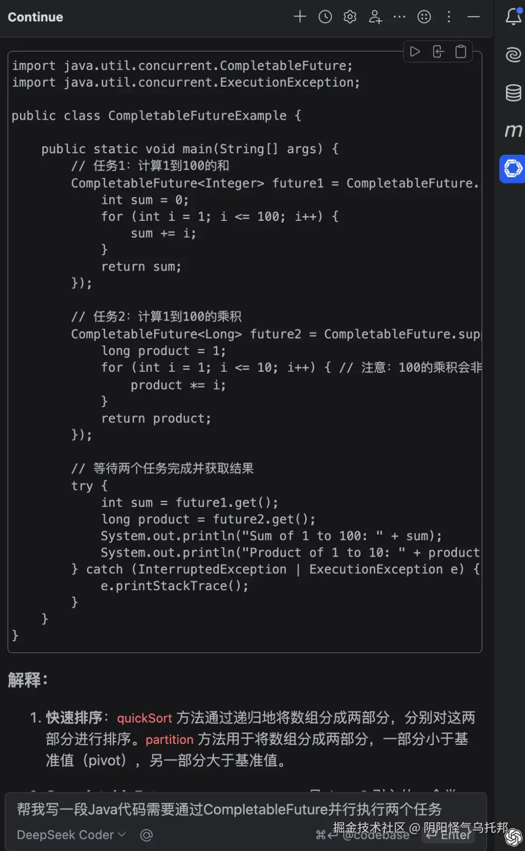 这篇文章简单介绍一下如何在常用的 IDE 中接入 DeepSeek,这里以 Java 开发最常用的 IDEA 为例。