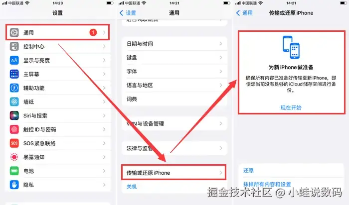 步骤2:依次进入 【设置】>【通用】>【还原】 ,选择 【抹掉所有内容和设置】 。这一步将清除手机上的所有数据,请务必确保您已备份。