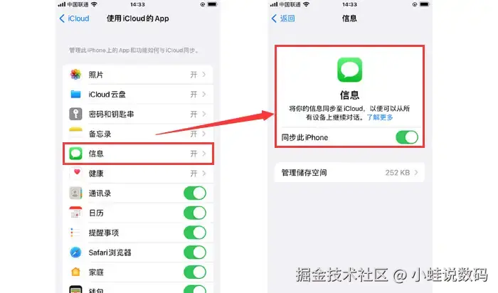 步骤1:进入 【iCloud备份】 中查看是否已经提前开启了【信息】的云备份。