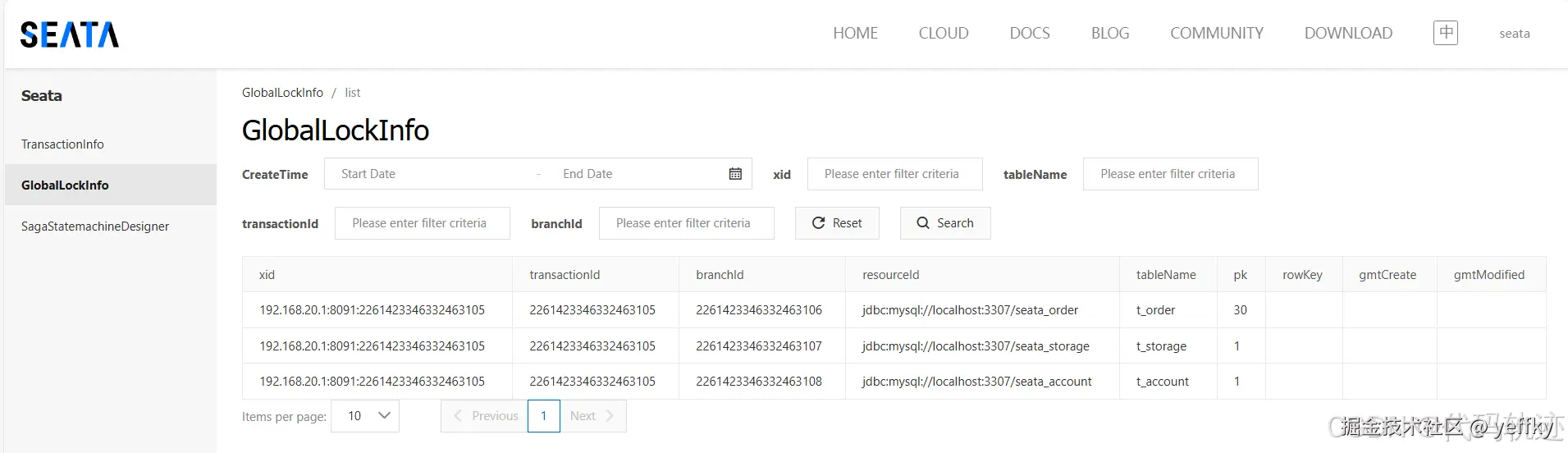 - 二阶段如果是顺利提交,因为业务SQL在一阶段已经提交,所以Seata只需将一阶段保存的快照数据和行锁删掉,完成数据清理即可。