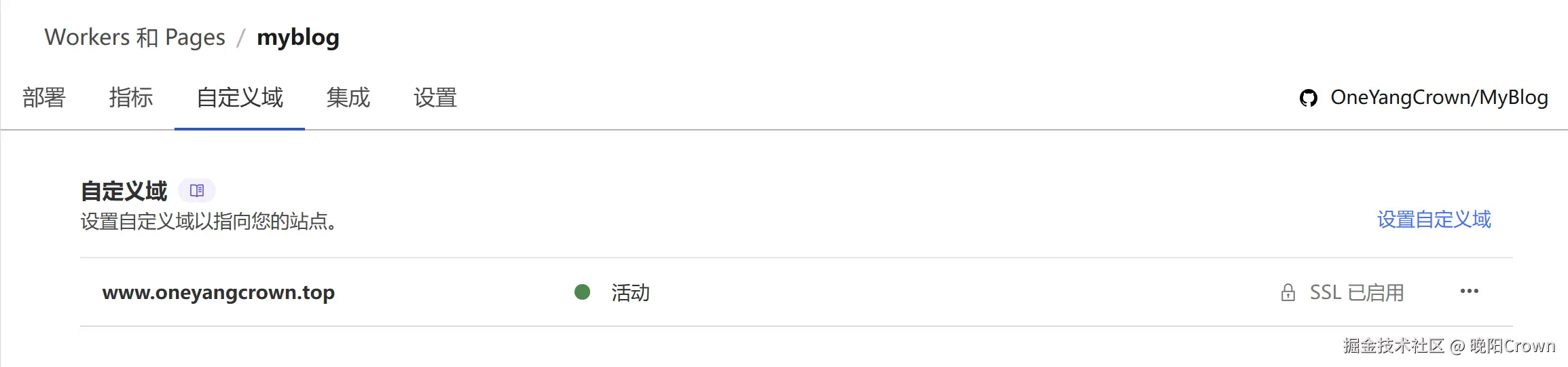 打开前面创建的Pages项目>自定义域,点击设置自定义域
