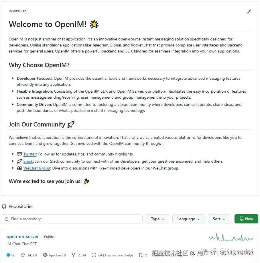 作为开源即时通讯(IM)领域的先驱,OpenIM 已在 GitHub 获得超过 15,000 星标,这一成就归功于全球开发者社区的广泛支持。随着数据保护和隐私安全日益受到重视,越来越多的组织选择私有部署 IM 解决方案,这与国内软件行业的快速增长相得益彰。特别是在政府和企业部门,随着信息技术的快速更新和创新应用的广泛实施,IM 系统的需求正在经历飞速增长。