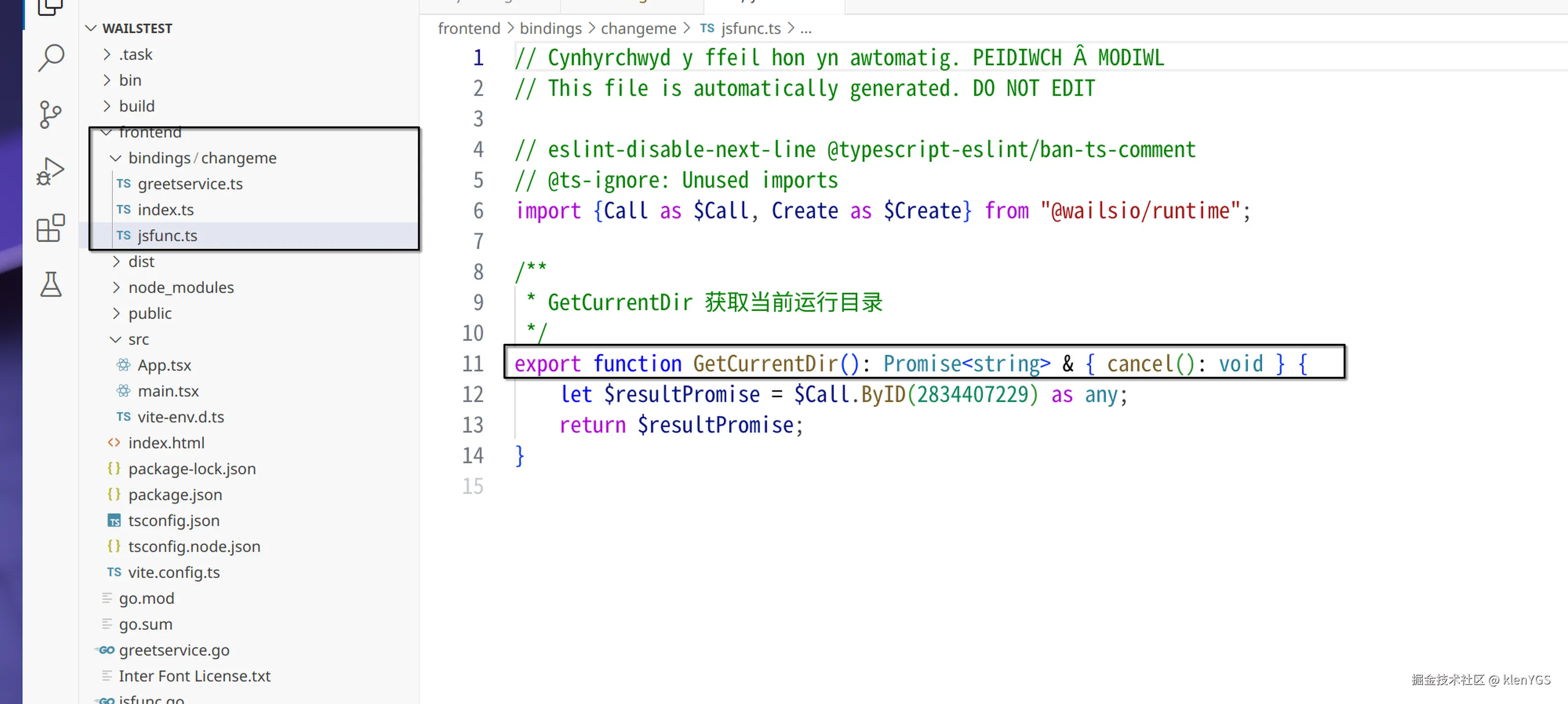 在App.jsx页面中,导入 GetCurrentDir 并使用以异步方式调用Go方法