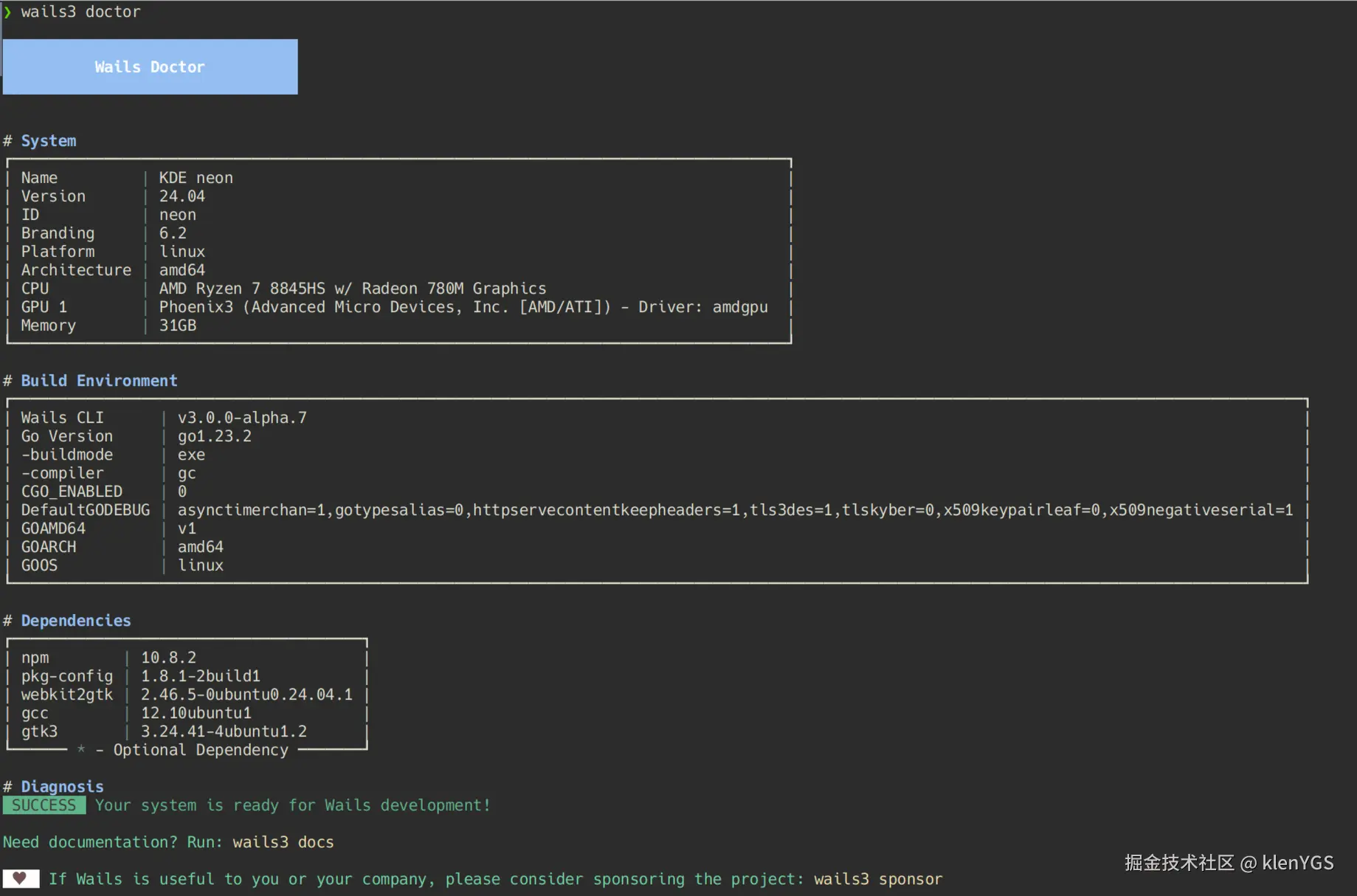 运行以下命令,检测wails桌面开发的一些其他依赖是否安装完成