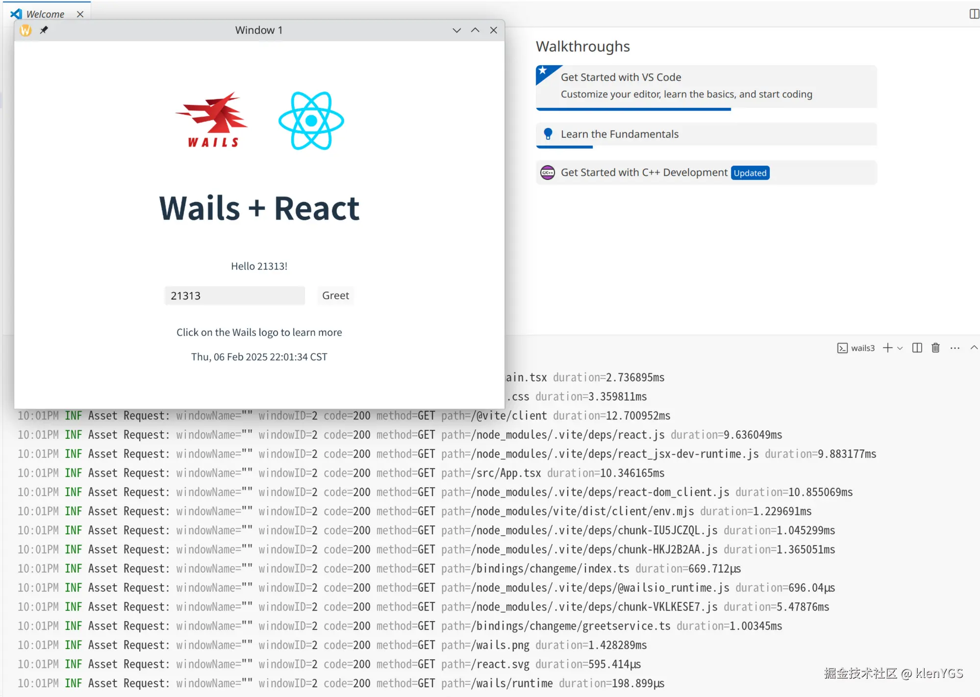 本节将展示 wails v3 创建一个 go + react-ts 项目,并实现一些基本的js 与 go互操作