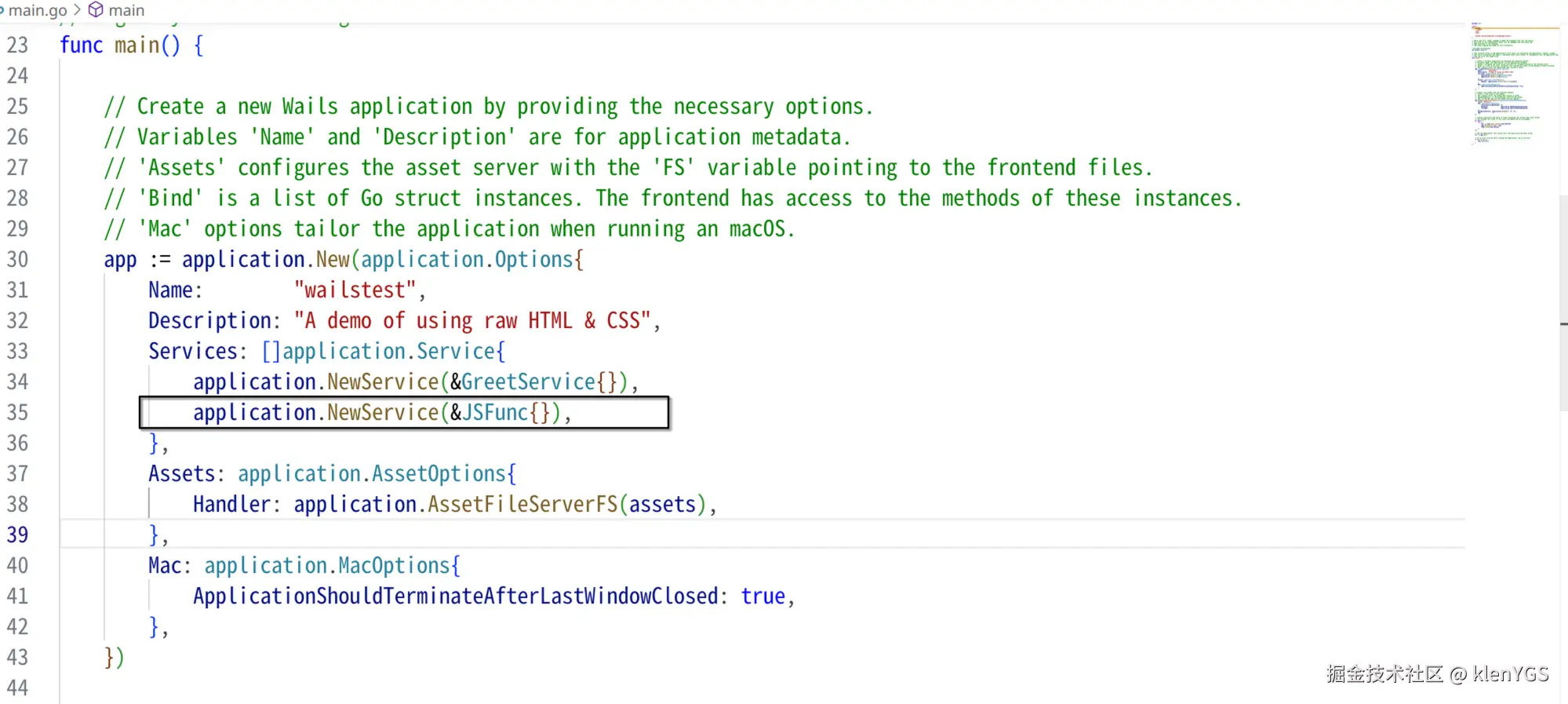 在main方法中,application.Options 的 Services 数组添加新的Service并传入刚刚创建的结构体