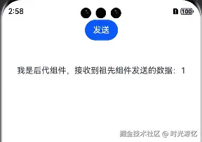 Text(`我是后代组件,接收到祖先组件发送的数据:${this.value}`)
