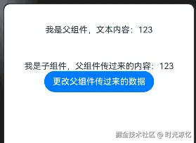 举例:父组件向子组件传递一个数据 text,默认值是 123,当点击按钮的时候,更新 text 的值为 456