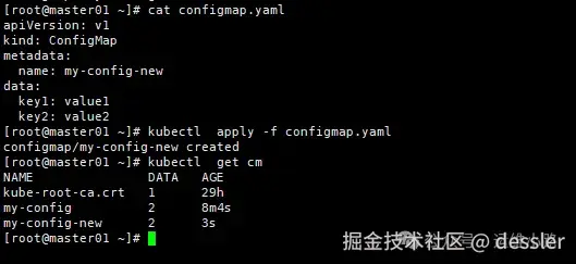 YAML文件定义:可以通过编写YAML文件来定义ConfigMap,然后使用kubectl apply命令将其部署到集群中。