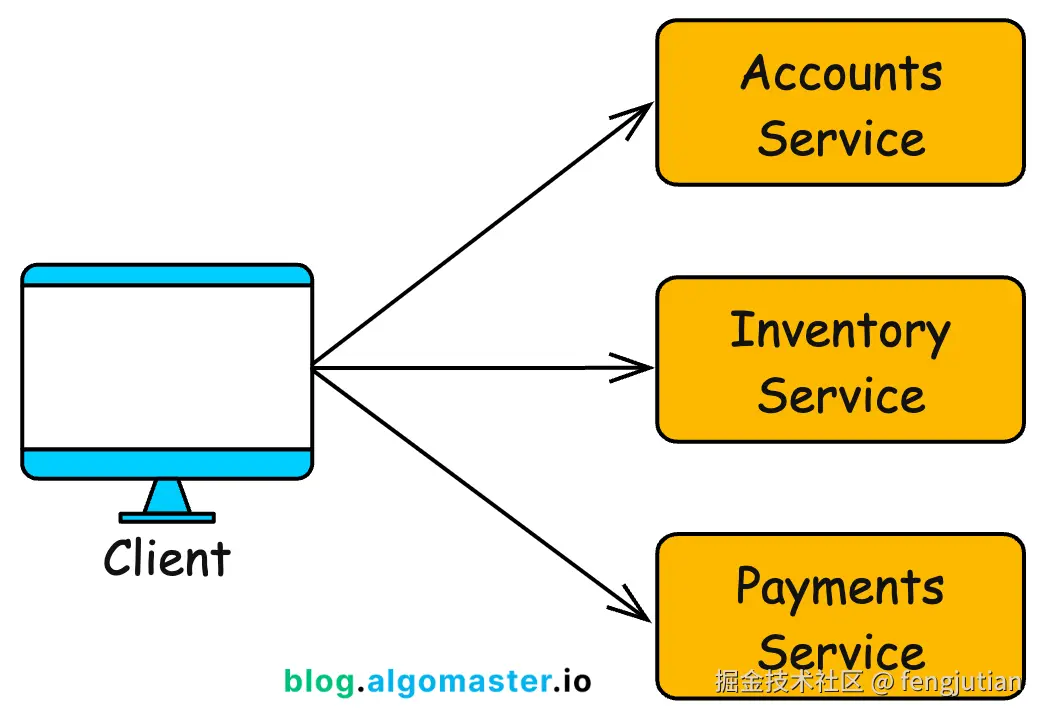 现在,API 网关需要协调多个后端服务来处理你的订单。