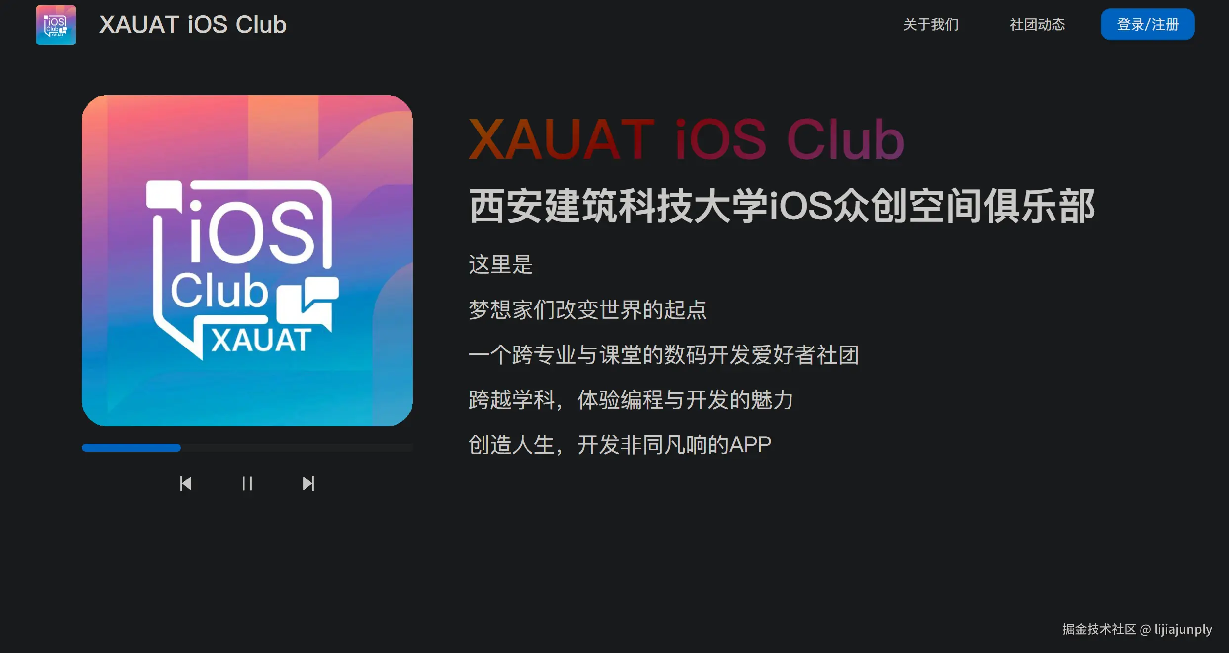 例如西建大iOS Club的官网,目前是没有适配暗黑模式的:
