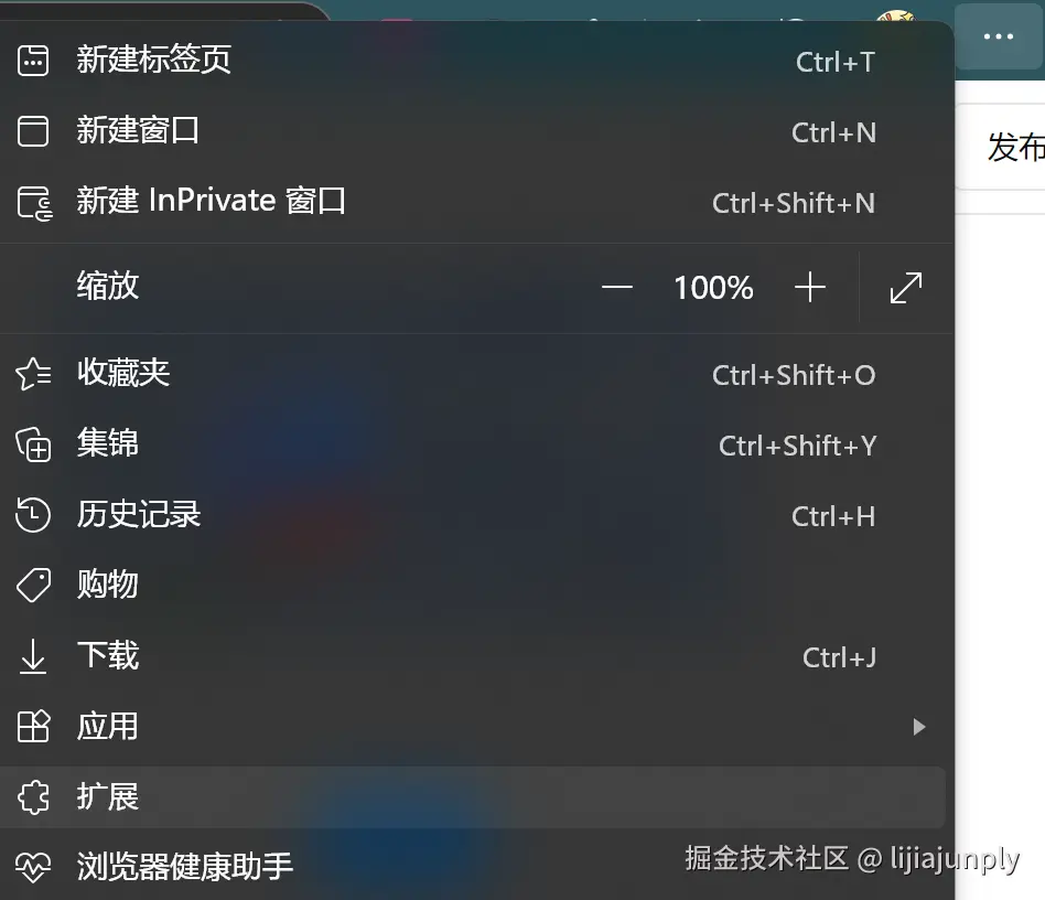 对于Edge浏览器来说,只需要点击那三个点,然后再点击扩展,就可以来到这个页面: