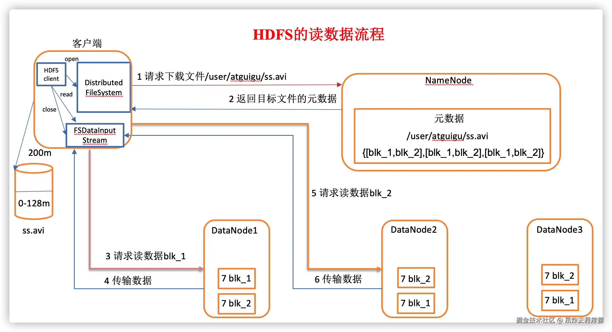 1.客户端向NameNode请求获取文件,并对请求进行检查。