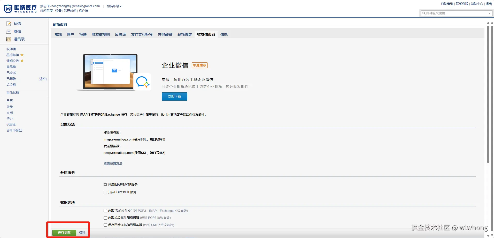 之前天真的以为腾讯有了企业微信之后就不和Foxmail合作了,直到我深入了解了IMAP协议我才发现我就是个蠢蛋,IMAP协议后面问题拓展中会深入讨论,这部分只讨论解决问题,好,下面正式进入到解决方案。