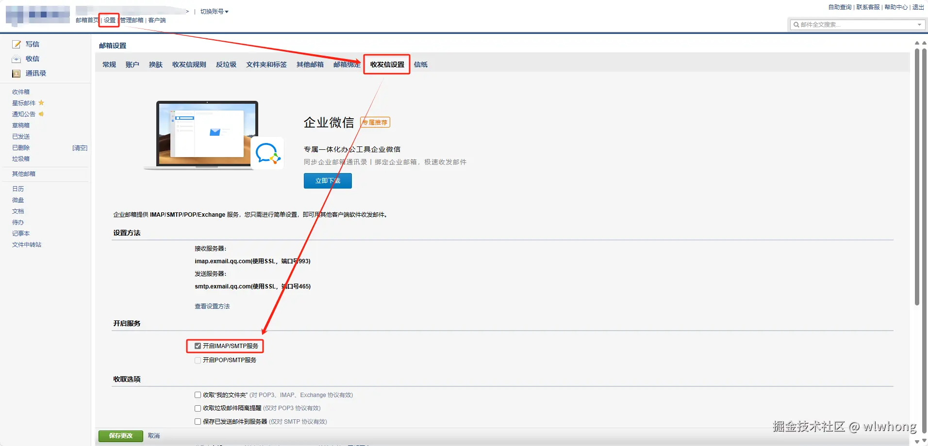 设置->收发短信设置->开启IMAP/SMTP服务