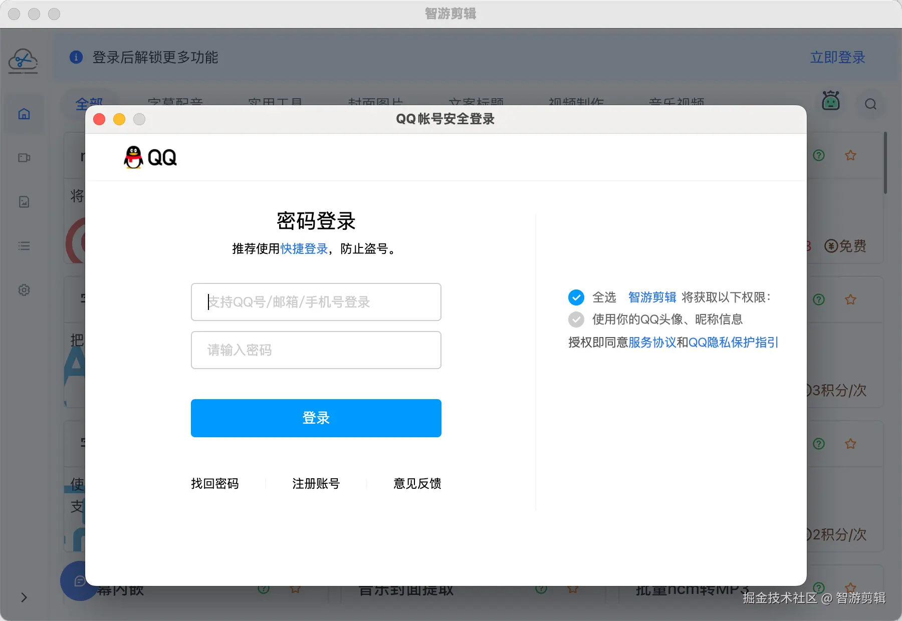 目前软件支持QQ和微信两种登录方式