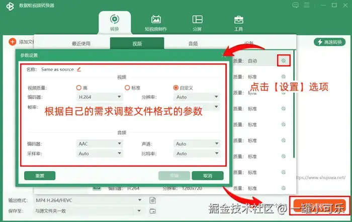 步骤3:点击【设置】选项,根据自己的需求调整文件格式的参数,然后点击【全部转换】,等待转换完成后,就会自动弹出已转换好的文件。