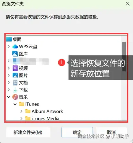 步骤3: 单击【导出】后就会显示出选择恢复文件存储位置的弹窗,完成选择即可。