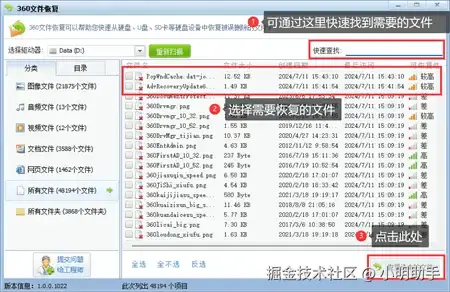 方法3:使用360安全卫士里面的文件恢复工具找回U盘文件