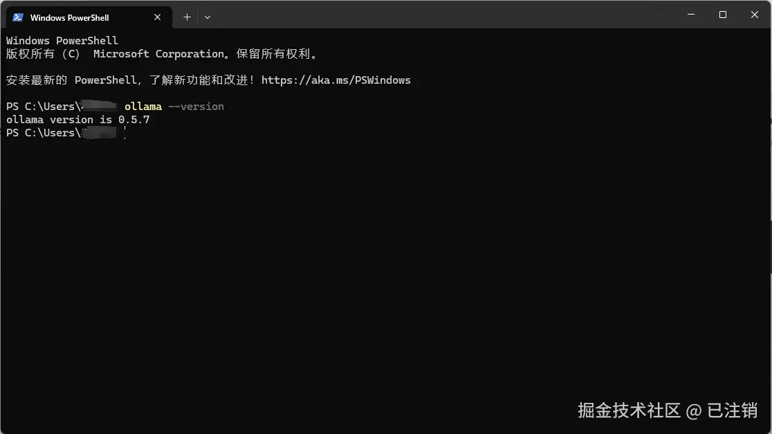 你也可以在 PowerShell (或使用 CMD)中查看你的 Ollama 版本,命令如下: