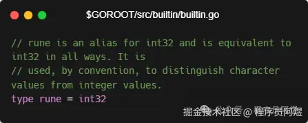 rune类型是int32类型的别称,即四个字节。一个rune类型的值其实就是一个 UTF-8 编码值。
