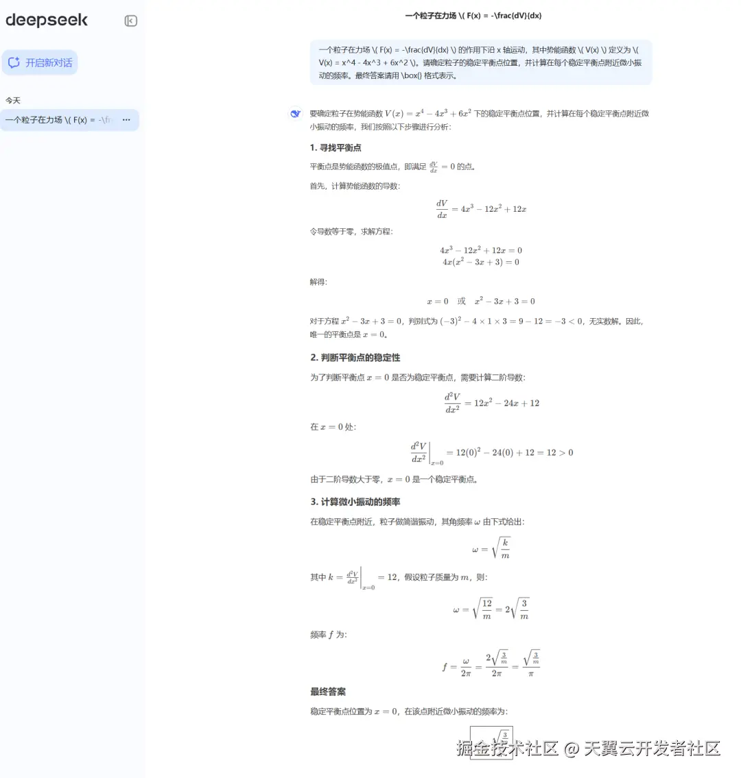 在“息壤”智算平台上部署的DeepSeek-R1模型,基于昇腾实例,实测一个涉及高等数学与物理学的复杂综合问题,该问题不仅需要模型具备强大的数学推理能力,还要求其能够理解并应用物理学中的概念。