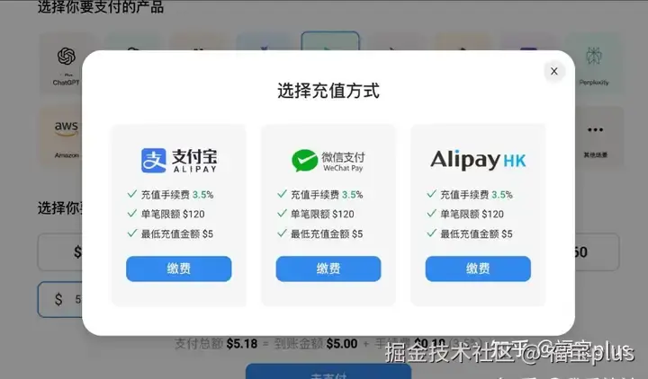 (5) 点击“充值”按钮,并按照提示使用支付宝、微信进行充值。目前Gemini Pro是可以免费使用的,但是绑卡时,会进行一个预扣款来确定是否成功,有些海外服务是预扣款0.01 然后再进行退回。