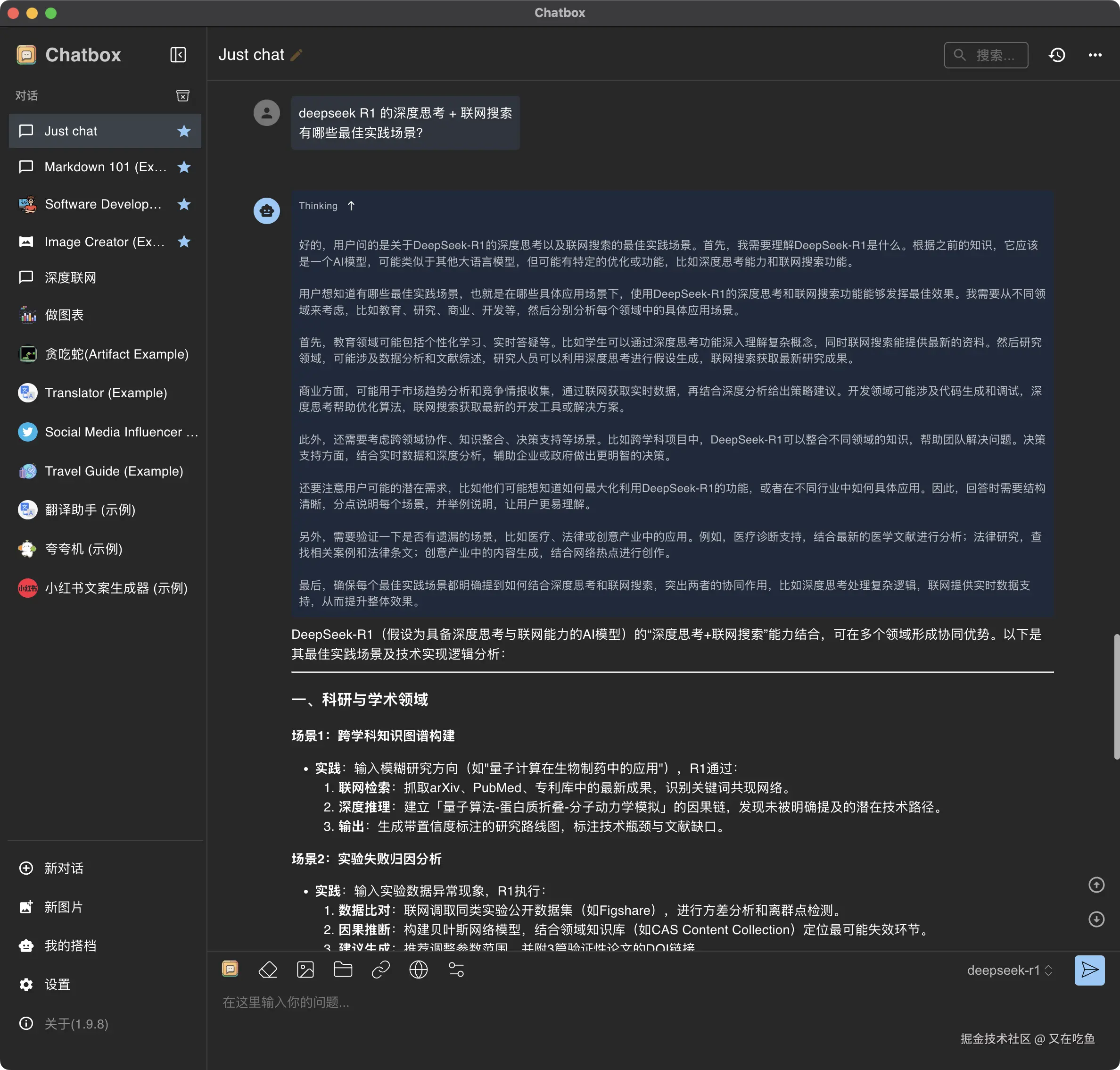 DeepSeek-R1为671B模型,使用强化学习训练,推理过程包含大量反思和验证,思维链长度可达数万字。 该系列模型在数学、代码以及各种复杂逻辑推理任务上推理效果优异,并为用户展现了完整的思考过程。