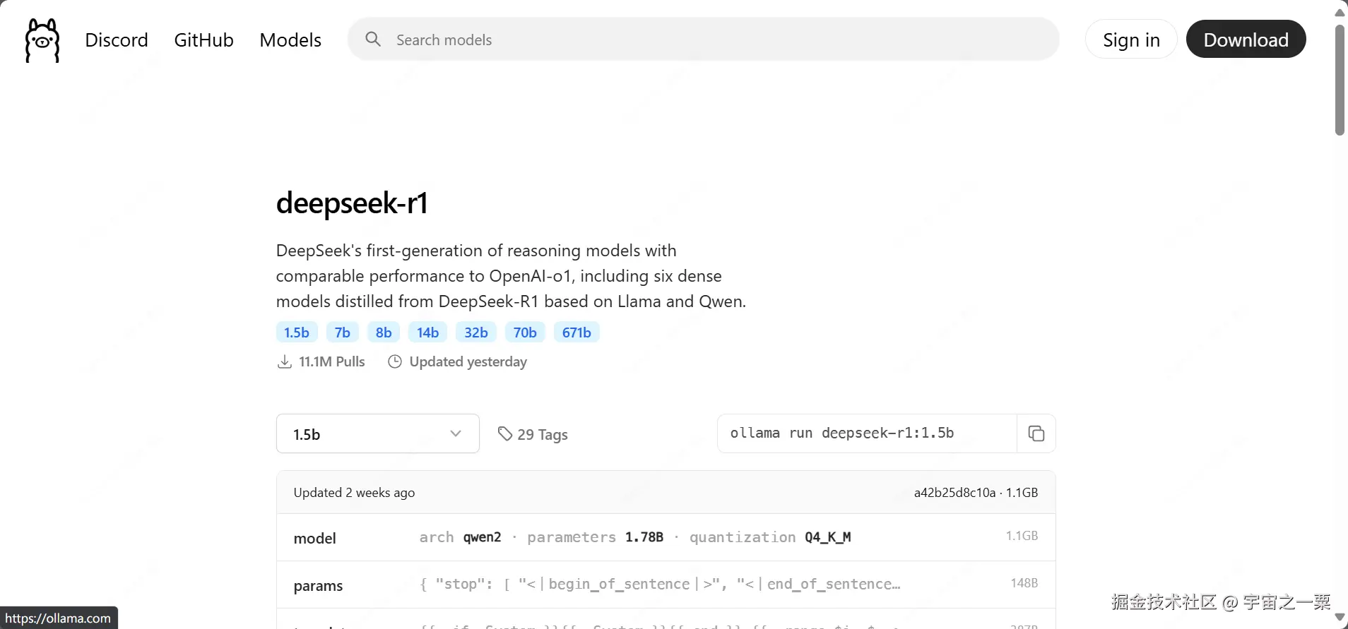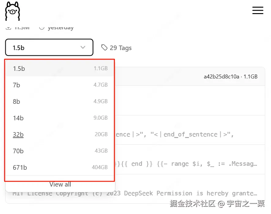 Deepseek 模型库地址:ollama.com/library/dee…