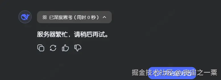 但是 DeepSeek 实在是太火热了,导致截至今天都太多人反问,基本上只能每天问它一句,如果再进行上下文追问,就会服务器繁忙,请稍微再试了。