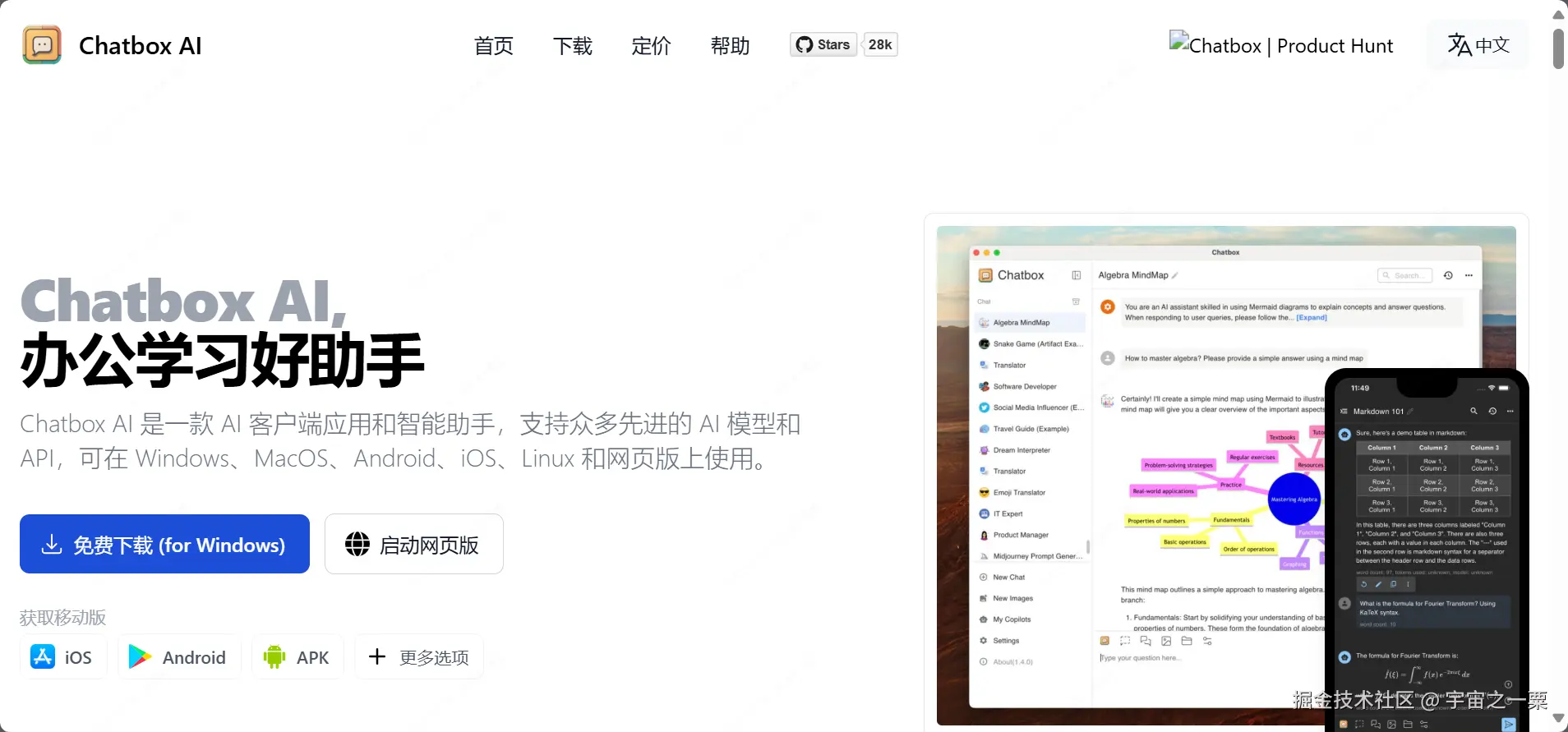 Chatbox AI : 办公学习好助手。Chatbox AI 是一款 AI 客户端应用和智能助手,支持众多先进的 AI 模型和 API,可在 Windows、MacOS、Android、iOS、Linux 和网页版上使用。