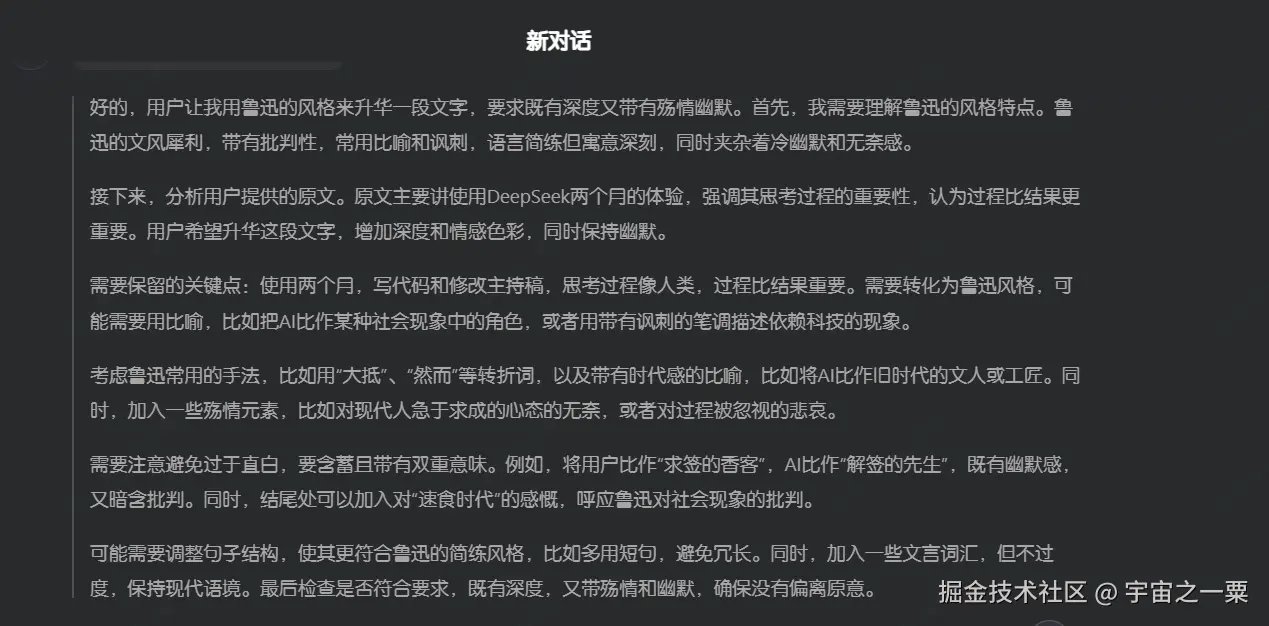 如果你只想简单的抛给 DeepSeek 一个问题,就想得到一个满意的答案的话,我估计它也不可能让你满意。就像其他 AI 工具一样,总有你看不上的地方。