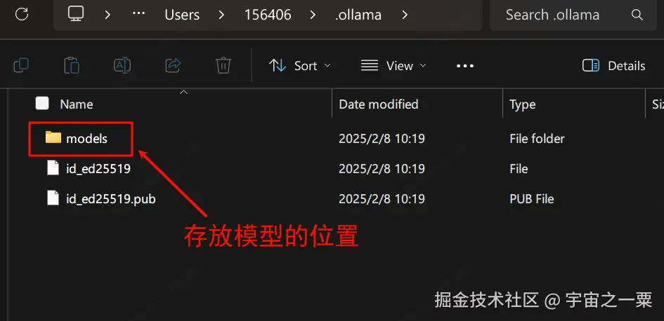 C:\Users{name}.ollama,下图就是我的电脑名称文件路径:C:\Users\156406.ollama