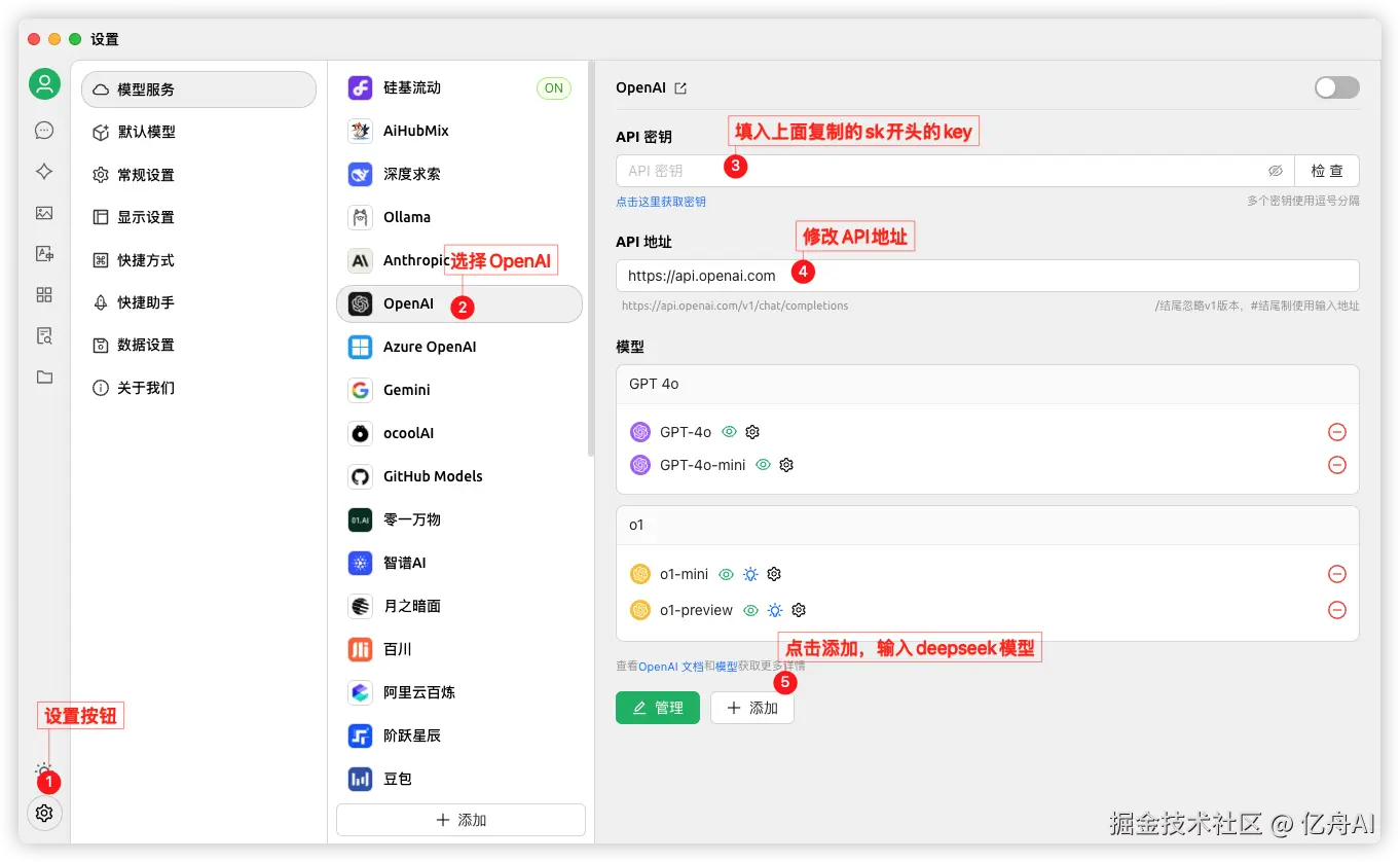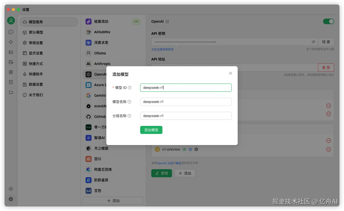- 选择模型服务中的 OpenAI