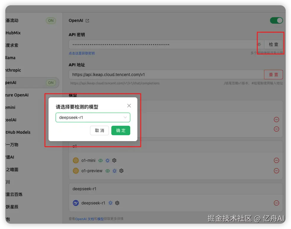 我们可以点击检查按钮,选择 r1 模型,来看下是否配置成功
