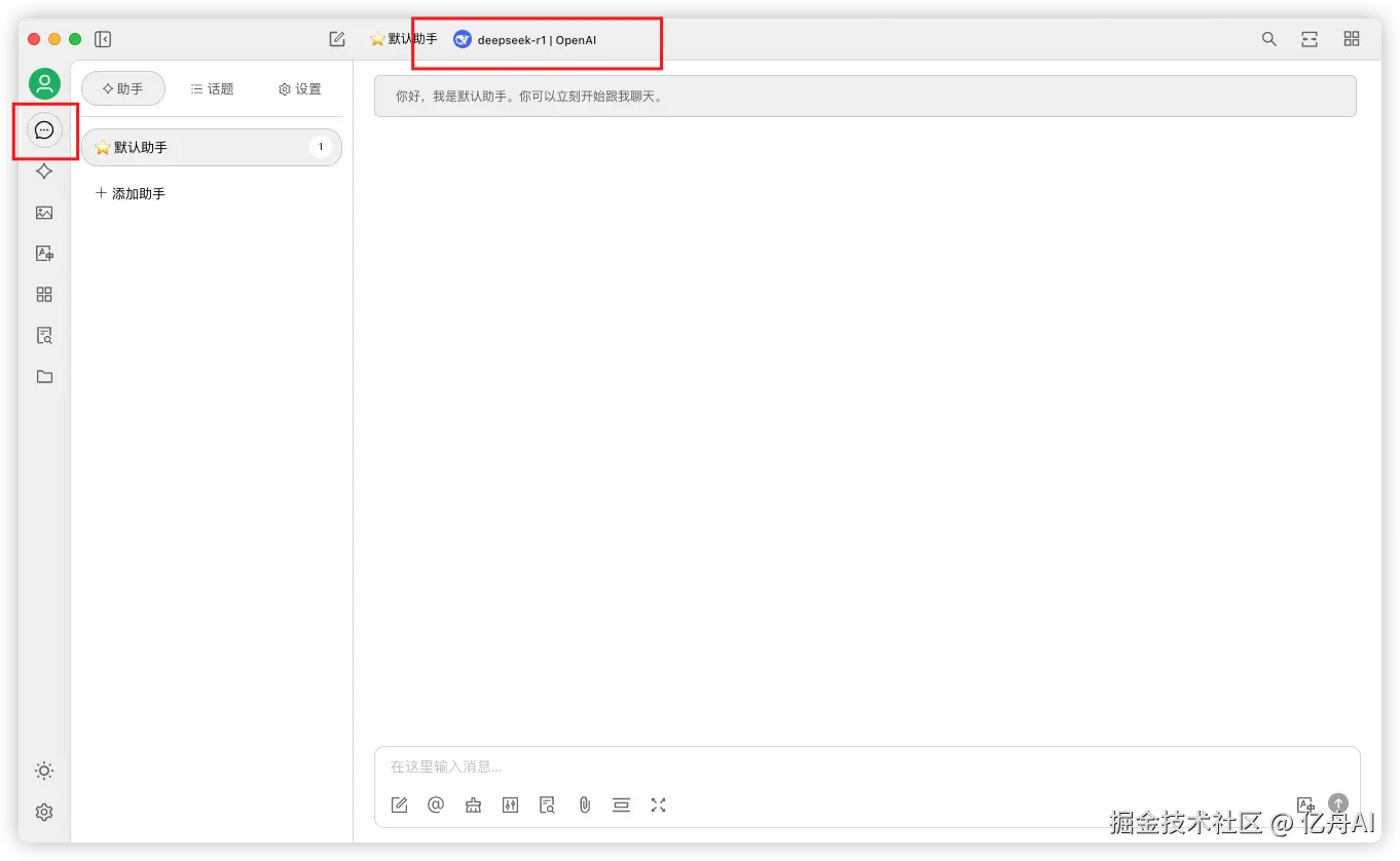 选择头像下方的对话按钮,选择刚刚创建的 deepseek-r1 模型,就可以对话啦
