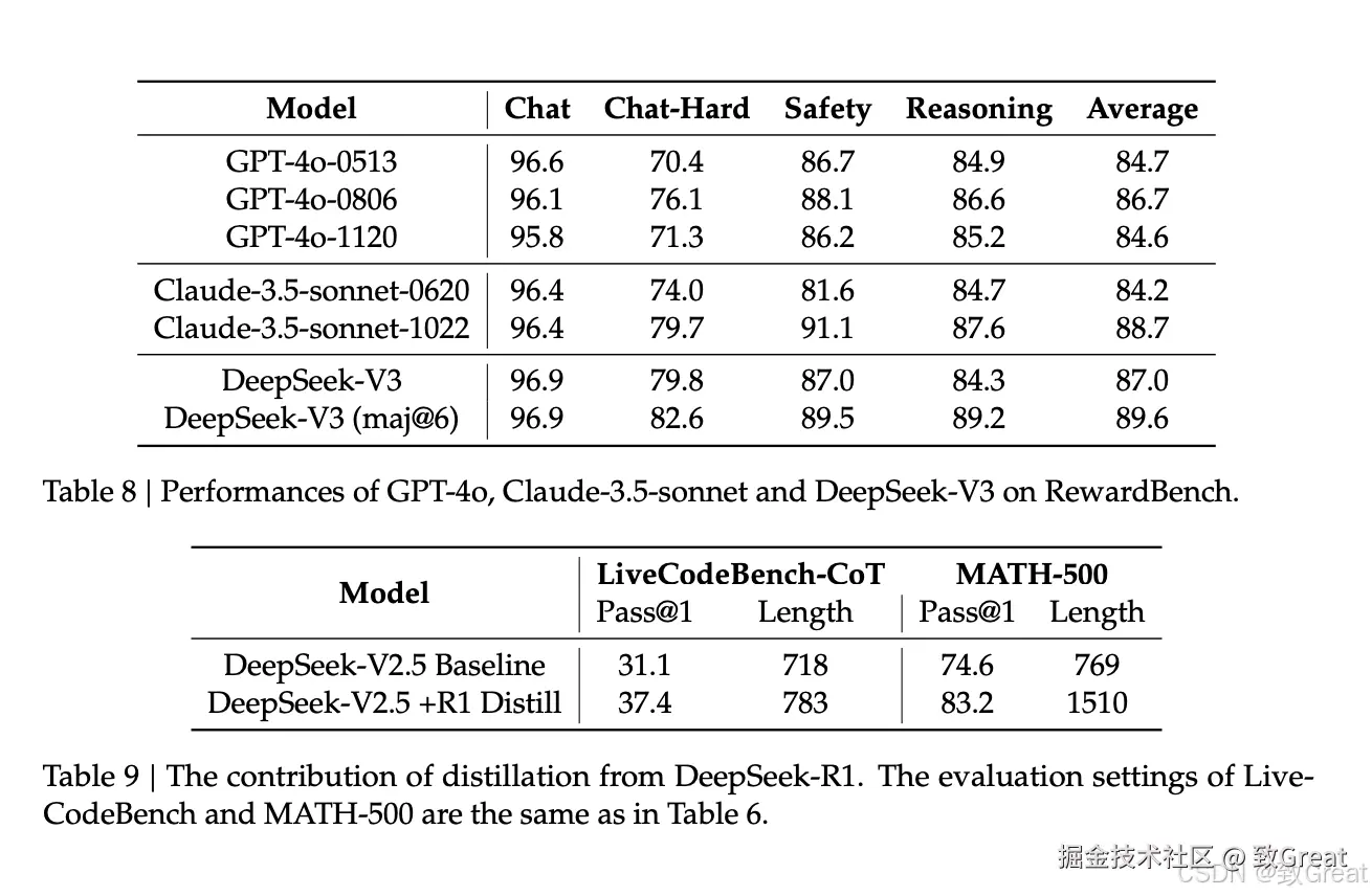 - 论文通过在多个公共基准测试和开放性评估中对 DeepSeek LLM 进行评估,展示其在代码、数学和推理等领域的优越性能。