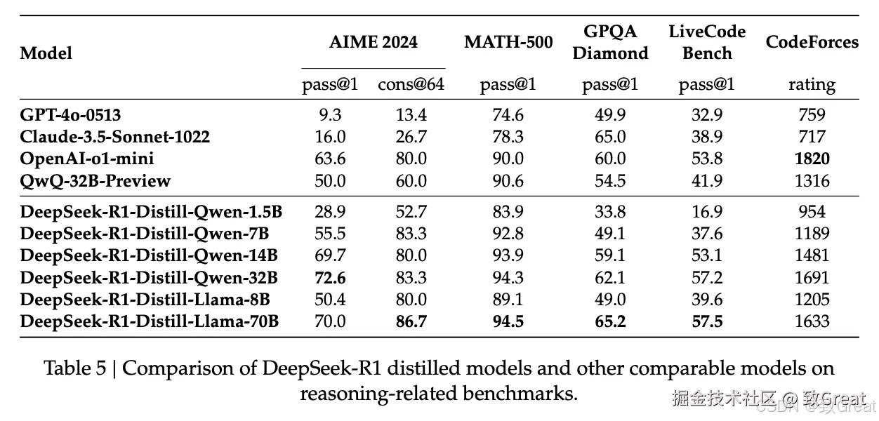- 大型模型向小型模型迁移推理能力: 使用Qwen2.5和Llama作为基础模型,从DeepSeek-R1进行蒸馏,提升小型模型推理能力。