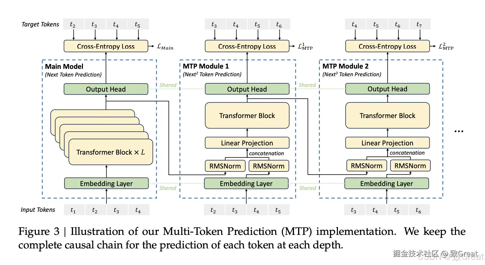 多标记预测训练目标:DeepSeek-V3采用了多标记预测(Multi-Token Prediction,MTP)训练目标,这被观察到可以增强模型在评估基准上的整体性能。