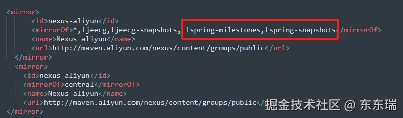 我使用的是阿里的仓库配置,所以配置增加了!spring-milestones,!spring-snapshots