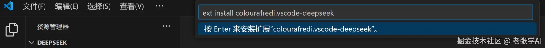 >后输入 ext install colourafredi.vscode-deepseek