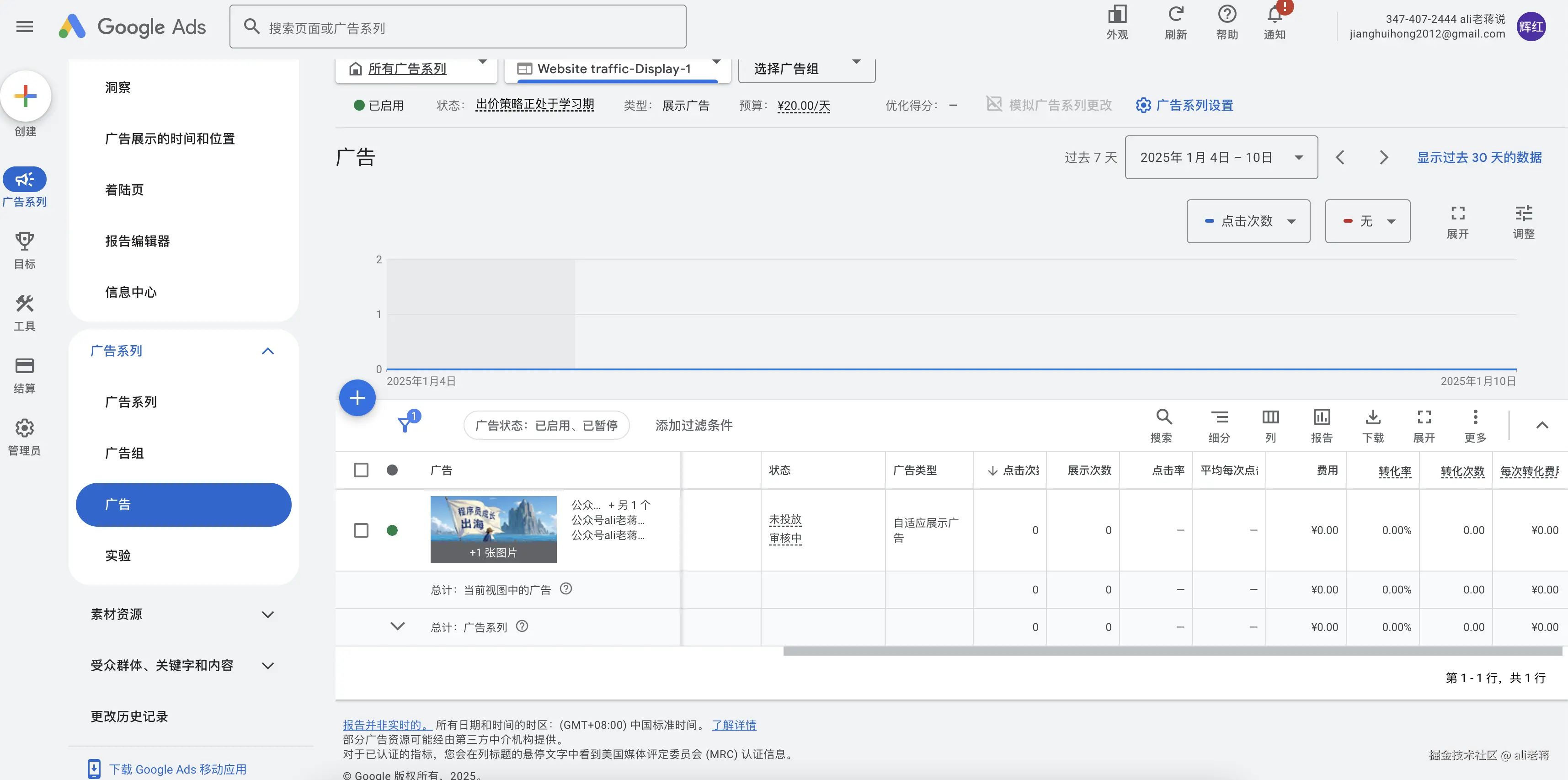 我维护了一个个人网站,想试试水,在谷歌上投放一些关键字,看看能否提升个人网站的流量,通过通过个人网站引流公众号,并通过公众号进行商业化。