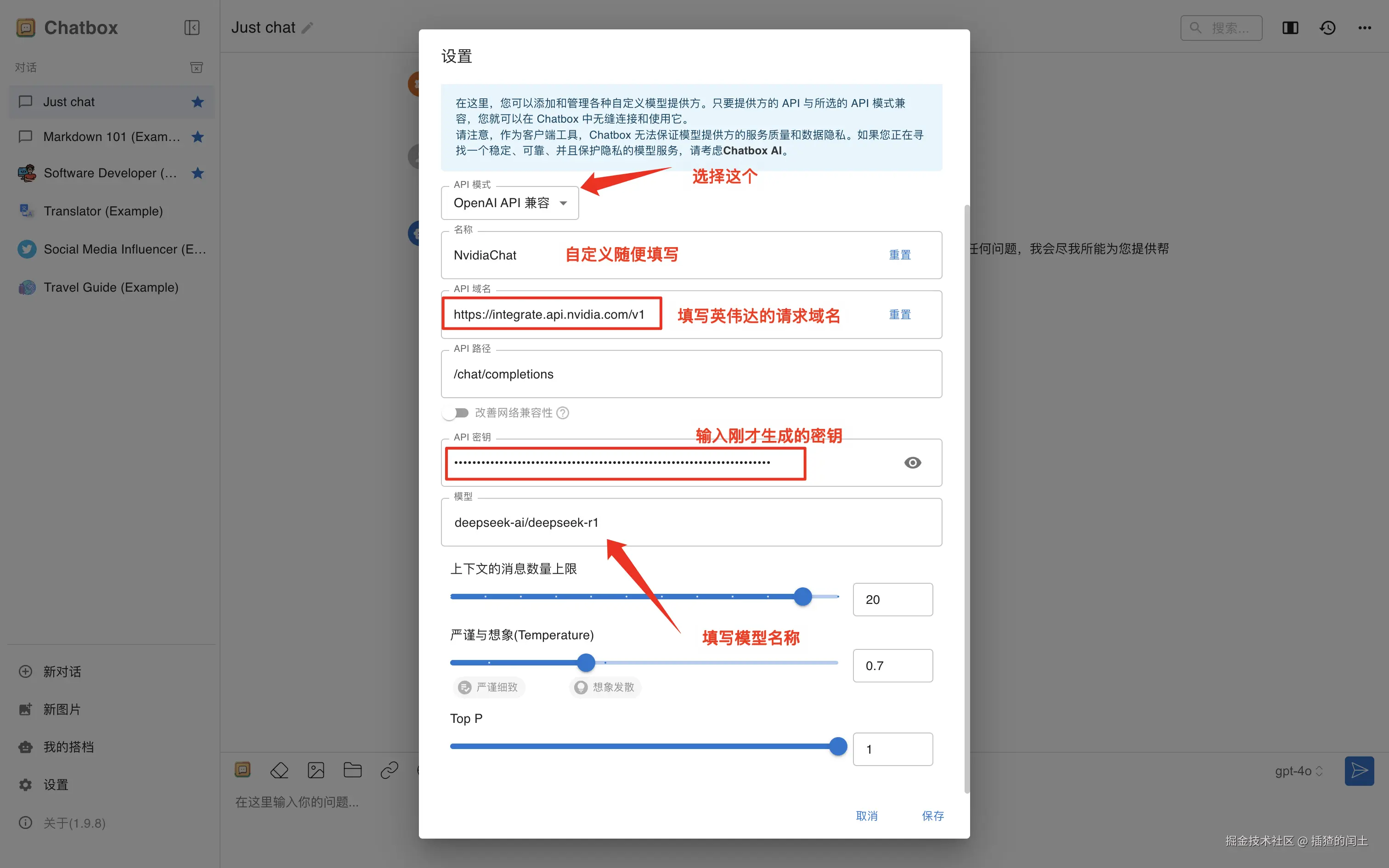 这里以 ChatBox App 为例 👉chatboxai.app/zh