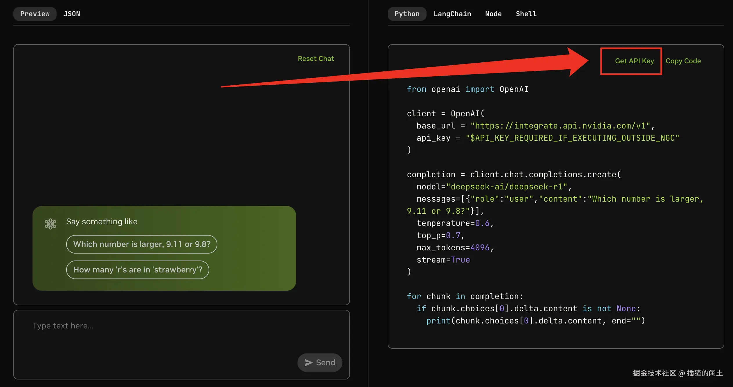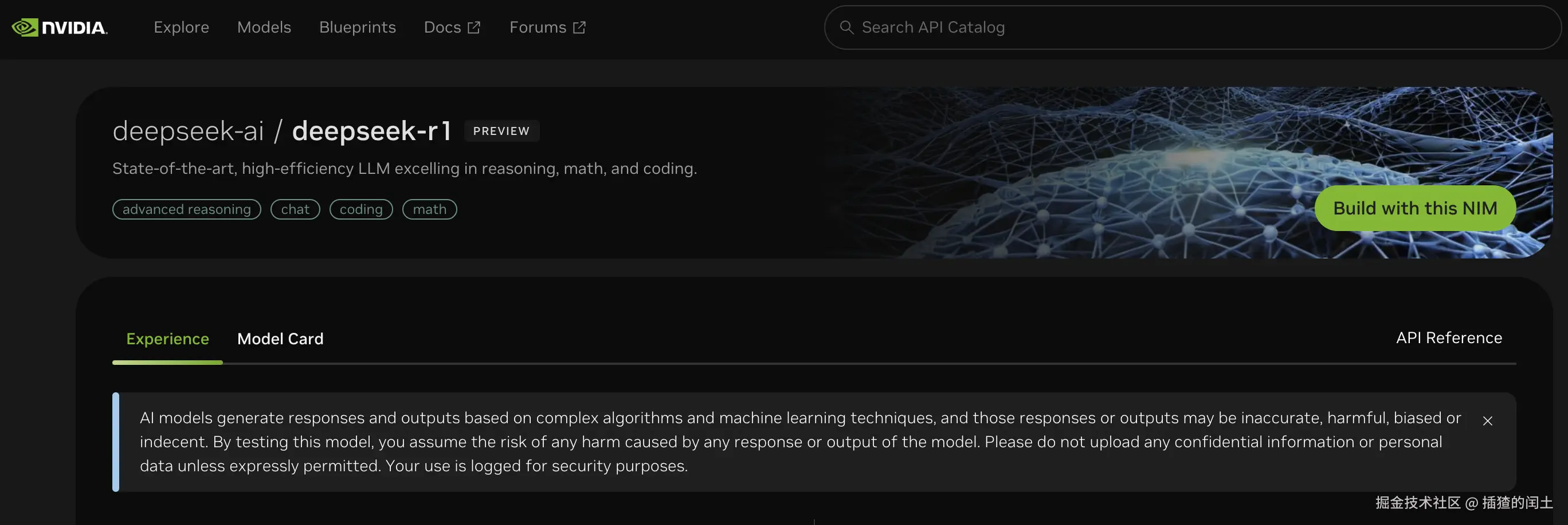 随后来到 NIM 上 DeepSeek-R1 的地址 👉build.nvidia.com/deepseek-ai…