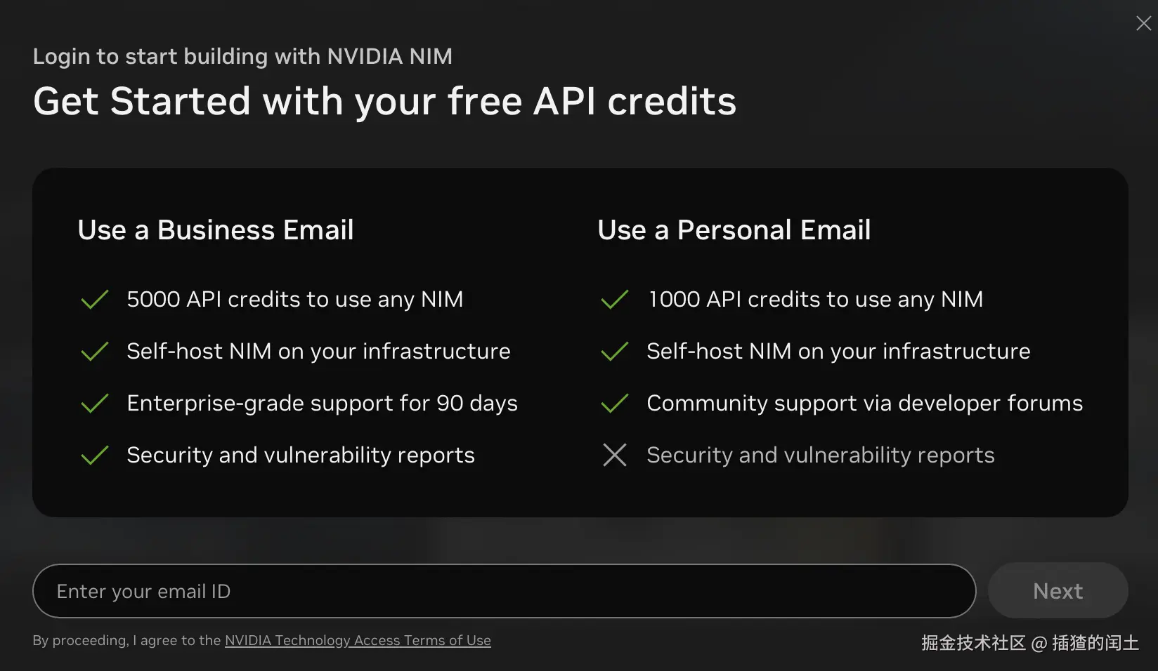 ❗️❗️❗️ 用一个邮件地址注册一个账号就能获得 1000 次免费推理(公司邮箱可以获得 5000 次)